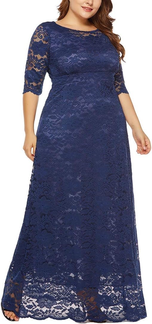 Long lace dress with floral pattern, partially lined (Slightly Sheer) for an attractive effect. 3/4 sleeves wide at the ends. Suitable for themed evening parties.